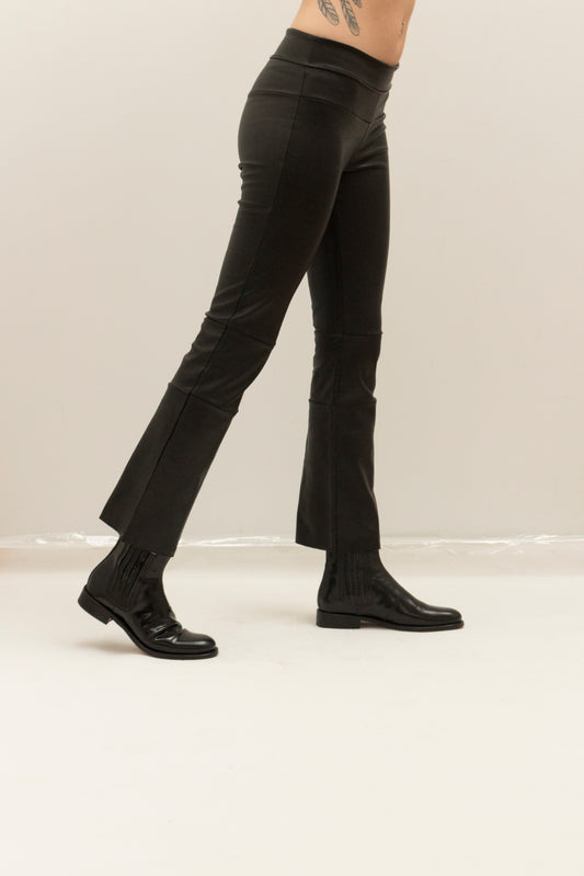 Stretch Lamb Leather Classic Leggings. Slate Gray.