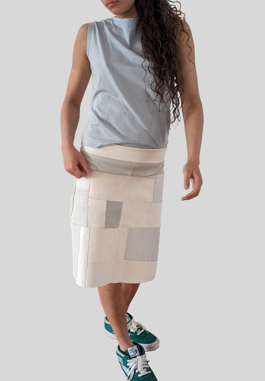 Stretch Lamb Leather Patchwork A-line Skirt: White