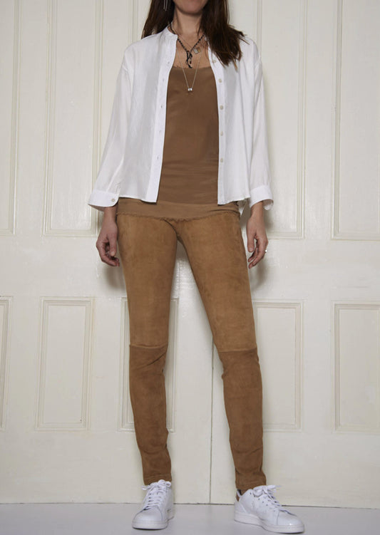 Stretch Lamb Leather Classic Leggings,Olive Green